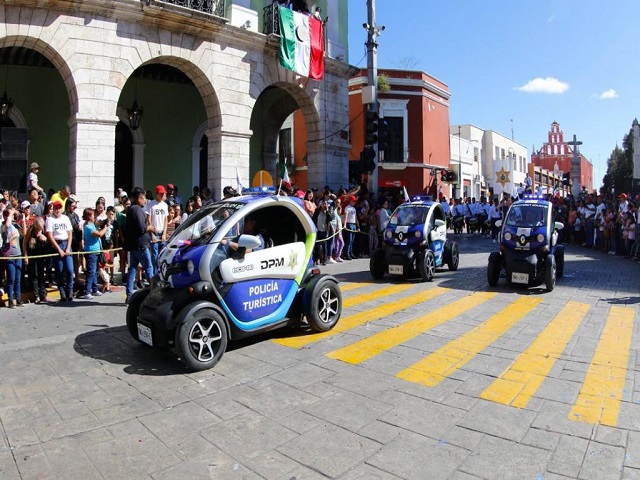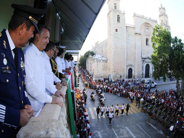 El alcalde Alejandro Ruz Castro, presenció esta mañana el desfile cívico- deportivo conmemorativo por el CXIII Aniversario de la Revolución Social Mexicana, en el que participaron instituciones educativas, dependencias públicas, corporaciones policíacas y militares.Posterior al izamiento de la Bandera Nacional que tuvo lugar en la Plaza Grande, el Presidente Municipal se trasladó al balcón del Palacio de Gobierno, donde acompañó al gobernador del Estado, Mauricio Vila Dosal, para presenciar el paso de los contingentes.El derrotero tuvo una duración de poco más de dos horas y la Policía Municipal de Mérida participó con 274 elementos entre personal de Guardaparques, vialidad, seguridad pública, banda de guerra, administrativo, policía preventiva y 12 vehículos eléctricos, 6 camionetas y 10 motocicletas.Al concluir el derrotero, Ruz Castro, acompañado de su hijo Rodrigo Ruz Cetina, de Julio Sauma Castillo, secretario municipal y Benjamín Millet Molina, secretario técnico de Guardaparques; acudió a las instalaciones de la corporación policíaca para saludar a las y los elementos para dirigirles un mensaje de agradecimiento por su destacada participación durante todo el desfile.El Presidente Municipal aprovechó manifestar su orgullo por los alcances que ha tenido esta corporación, que gracias a su desempeño hacen de Mérida una de las ciudades más seguras de México y el mundo. Navegación de entradasEl Gobernador Mauricio Vila encabeza el desfile cívico-deportivo del inicio de la Revolución Social Mexicana Celebra Umán 33 años de ser nombrada Ciudad