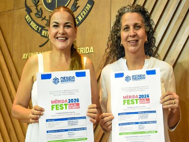 Mérida, Yucatán, lunes 28 de julio de 2025.- Con el objetivo de impulsar a los artistas y el talento de Mérida, la presidenta municipal Cecilia Patrón Laviada presentó la convocatoria para participar en el Mérida Fest 2026, que se realizará del 5 al 18 de enero próximo para celebrar el aniversario 484 de la capital yucateca.“Es una alegría servir a las y los meridianos desde la cultura, y por eso buscaremos hacer el mejor Mérida Fest, en el que todas y todos vivamos el arte y la cultura a tope, pero sobre todo, la identidad que nos fortalece”, afirmó la alcaldesa.Acompañada de Karla Berrón Cámara, directora de Identidad y Cultura, la edil dio a conocer que las formas de participación son: por grupos constituidos o por equipos de trabajo.Las modalidades a postularse son en producción internacional, por un monto de 280 mil pesos; producción nacional, por 170 mil pesos, y promoción, por 75 mil pesos.Las fechas límite de registro serán el martes 2 de septiembre para música, el miércoles 3 para teatro y artes circenses y el jueves 4 para danza e interdisciplina.El registro y entrega de proyectos es 100 por ciento en línea, modernizando y facilitando los procesos, mediante la página merida.gob.mx/convocatoriasculturaSe ofrecerán cuatro charlas para los artistas o creadores que tengan dudas en el llenado para inscribir su proyecto programadas el jueves 31 de julio, de 10 a.m. a 12 p.m., en el Centro Cultural José Martí; el martes 5 de agosto, de 5 a 7 p.m., en el Centro Cultural Olimpo; el miércoles 14 de agosto de 6 a 8 p.m., en el Centro Cultural José Martí, y el miércoles 20 de agosto, de 10 a.m. a 12 p.m., en el Centro Cultural Olimpo.La decisión es de un comité conformado por especialistas para que queden los mejores proyectos, de manera transparente.Los resultados se darán a conocer el jueves 2 de octubre de 2025 mediante el sitio web del Ayuntamiento de Mérida www.merida.gob.mxPosteriormente se contactará al titular del proyecto mediante email y vía telefónica en el transcurso de los siguientes 10 días hábiles.Para atención y dudas, en la Dirección de Identidad y Cultura al teléfono: (999)9285414 extensión 83511, de lunes a viernes, de 8 a.m. a 3 p.m. o al correo cultura@merida.gob.mx Navegación de entradasInvestigarán a pescadores por vender equipo de seguridad entregado por el Gobierno de Yucatán Anuncia Cecilia Patrón el mes de las juventudes: empleos, becas, emprendimientos, y cuidado de la salud mental