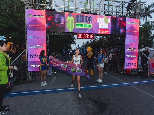 En el marco del 483 aniversario de la Fundación de la Ciudad de Mérida, la Presidenta Municipal, Cecilia Patrón Laviada presidió el aviso de salida del Marat´hon de Mérida 2025, festividad deportiva, una tradición meridana que enmarca las celebraciones de la capital yucateca.“Que mejor forma de empezar la celebración de la más chula de todas las ciudades que con esta fiesta deportiva con la participación de 4 mil corredores nacionales e internacionales, así como cientos de familias meridanas que acompañaron este Marat´hon”, exclamó Patrón Laviada.Desde las 4 de la mañana, con un clima frío pero agradable, iniciaron las actividades de esta edición deportiva con la proyección del videomapping en el Monumento a la Patria. En punto de las 5 sonó el aviso de salida para la categoría Silla de Ruedas de 42 kilómetros y, poco después, para Corredores Absolutos del maratón.Siguieron los participantes del medio maratón (21 kilómetros), los de 10 kilómetros, y la caminata recreativa que la Alcaldesa recorrió acompaña de cientos de familias.A lo largo del trayecto, representantes de diversas dependencias municipales y ciudadanos en general dieron ánimo a los participantes, muestra de la calidez que caracteriza a las y los meridanos.Los participantes recorrieron sitios emblemáticos y de belleza de la ciudad, para promover a Mérida como un destino a visitar, ya que el turismo, incluyendo el deportivo, implica importantes beneficios para la economía de miles de meridanas y meridanos.Entre los ganadores Absolutos de la Marat´hon 42K, en la rama Varonil, se posicionaron en el pódium de campeones lo corredores Kenianos Roberth Gahito Gititu con un tiempo de 02 17’ 39’’, Geoffrey Kenisi Bundi, con 02 21’ 35’’, y Eliud Kipkorir Kosgei, con 02 23’ 39’’.En los Absolutos de la rama Femenil se coronó en primer sitio Isabel Guadalupe Oropeza Vázquez, con 02 46’ 51’’; en segundo lugar, Anahí Rivera Olmedo, con 2 55’ 56’’, y en tercero, Georgina Ortega Vera, con 03 06’ 29’’.En la categoría de Sillas de Ruedas Mixtas ocuparon el pódium Rogelio Emmanuel Martínez Segura, con un recorrido de 2 20’ 07’,’ y José Luis González Cámara, con un tiempo de 03 46’ 42’.“Nos encanta la participación de todos, recuerden que el deporte y la cultura nos unen como comunidad, y cuando hay unión hay paz y armonía, y ese es nuestro trabajo de todos los días, generar la paz y la armonía de nuestra ciudad”, indicó.En cuanto a los yucatecos mejor posicionados, en los 42 kilómetros fueron Fernando Saavedra de León, con un tiempo de 2 34’48”, de la categoría Sub Máster Varonil, y de las mujeres, Rosalba Esther Mex Mex, con 3 07’21”.En la ruta de 21 kilómetros los mejores tiempos de los yucatecos lo ocuparon Jourdan Alexis Mendieta Puerto, con 1 14’01” en la Libre Varonil, y Abigail Cabrera Martínez, con un tiempo de 1 23’55” en la Libre Femenil.Acompañaron a la Alcaldesa el Director de Bienestar Humano, Jesús Pérez Ballote; los Coordinadores Generales Lizbeth Beatriz Basto Avilés, d Buen Gobierno; Flora Helena Zapata Mendiolea, de Justicia Social y Desarrollo Humano, y Carlos Francisco Viñas Heredia se Desarrollo Ordenado y Gestión de la Ciudad; Gilda Cota Vera, Coordinadora por la Inclusión de las Personas con Discapacidad; Ricardo Compean Ortega, Director Regional de Zona en Banorte; Hyrván Martínez Zapata, Presidente del Comité Ciudadano del Marat’hón Mérida, e Iván Herrera Rosiles, Subdirector de Deportes.También asistieron la Síndica María Cristina Castillo Espinosa; el Secretario Municipal, Edgar Ramírez Pech, y los regidores Genny Palomo Méndez, Angélica Mena Magaña, Asís Cano Cetina, Karla Boehm Calero, Juan Francisco Medina Sulub, Paulina Sánchez Díaz, Juan de Dios Collí Pinto, Diego Carrera Pérez y Gabriela Santinelli Recio. Navegación de entradasMarat’hon 2025, cupo completo Raúl Gudiño y Áxel Grijalva nuevos refuerzos de Venados FC