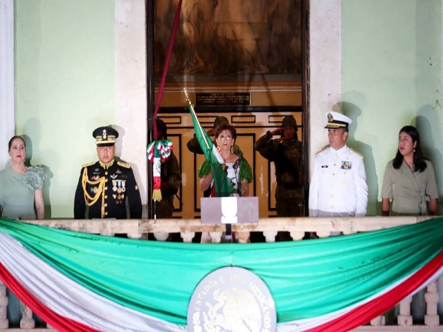 -La encargada del Despacho del Gobernador, María Fritz Sierra, en funciones del titular del Poder Ejecutivo, encabezó esta noche, junto con autoridades civiles y militares, la celebración del tradicional Grito desde Palacio de Gobierno.Mérida, Yucatán, 15 de septiembre de 2024.- “¡Mexicanos, viva la Independencia nacional!, ¡Viva Yucatán!, ¡Viva la sociedad y la unidad yucateca!, ¡Viva la soberanía nacional!, ¡Viva México!, ¡Viva México, ¡Viva México”, expresó la encargada del Despacho del Gobernador, María Fritz Sierra, en funciones del titular del Poder Ejecutivo, al encabezar esta noche, junto con autoridades civiles y militares, la celebración del tradicional Grito con motivo del 214 aniversario del inicio del movimiento de Independencia.Ante más de 55 mil yucatecos que se congregaron a las puertas de Palacio de Gobierno y la Plaza Grande, que lució sus mejores galas tras ser remodelada y modernizada, Fritz Sierra, con el lábaro patrio en la mano y haciendo tañer la campana, rememoró, como cada año, el hecho suscitado la madrugada del 16 de septiembre de 1810 cuando el cura Miguel Hidalgo y Costilla convocó al pueblo para iniciar la lucha por la independencia de México.“¡Vivan los Héroes que nos dieron Patria!, ¡Viva Miguel Hidalgo y Costilla!, ¡Viva Josefa Ortiz de Domínguez!, ¡Viva José María Morelos y Pavón!, ¡Viva Leona Vicario!, ¡Viva Vicente Guerrero!, ¡Viva Nicolás Bravo!, ¡Viva Yucatán!, ¡Viva México!”, manifestó la encargada del Despacho del Gobernador desde el balcón central de la sede del Poder Ejecutivo a lo que los miles de asistentes respondieron al unísono con “¡Viva!”.Momentos antes de los vítores a los héroes nacionales, el encargado del Despacho de la Secretaría General de Gobierno, José Carlos Puerto Patrón, dio lectura del Acta de Independencia, en presencia de los comandantes de la 32 Región Militar y Jorge Enrique Martínez Medina, 13 Zona Naval, José Ramón López Luna, así como de los representantes de los Poderes Legislativo, Clara Rosales Montiel y del Judicial, María Carolina Silvestre Canto Valdés.Como parte de la ceremonia, también se realizaron los honores a la enseña tricolor, se entonó el Himno Nacional Mexicano, seguido del Yucateco al que recientemente se actualizó la letra y se hicieron arreglos a su música original para que represente de mejor forma nuestra cultura, valores, tradiciones e historia. La nueva letra pertenece al compositor Luis Pérez Sabido, y se conservó la música original del autor José Jacinto Cuevas.Tras la ceremonia protocolaria, un espectáculo de fuegos pirotécnicos iluminó el cielo de la capital yucateca y atraparon la atención de los asistentes, para luego dar paso a la agrupación musical sinaloense Calibre 50, que amenizó la velada y puso a cantar y bailar al público presente con lo mejor de su repertorio. Éxitos como “A la antigüita”, “Siempre te voy a querer”, “Simplemente gracias”, “Amor del bueno”, “Contigo”, fueron interpretados por esta organización de estilo norteño-banda.La noche se desarrolló en medio de un ambiente de fervor patrio que reaviva el civismo entre la ciudadanía, pues los presentes en la ceremonia celebraron con algarabía y mucha emoción un aniversario más del inicio por la lucha de la independencia de nuestro país que, como suele ya ser costumbre en Yucatán, se desarrolló con total orden, tranquilidad y paz.Niños, jóvenes y adultos, familias completas de diferentes partes de la ciudad y el estado, así como visitantes que se encuentran en la capital yucateca, desde temprano se comenzaron a hacer presentes en el corazón del Centro Histórico de Mérida para participar en estas festividades, que contribuyen a fortalecer la identidad nacional.Ataviadas con traje regional, caras pintadas, sombreros, cornetas, matracas y adornos alusivos a los colores patrios, verde blanco y rojo, las personas comenzaron a llegar al corazón del Centro Histórico meridano desde temprana hora de este domingo para disfrutar primero de la presentación de animadores, luego la ceremonia protocolaria del grito y finalmente el concierto de Calibre 50. Navegación de entradasFamilias yucatecas dan muestra de patriotismo y civilidad en el desfile cívico-militar Sin denuncias contra los manifestantes en el Congreso del estado. Dip. Wilmer Monforte