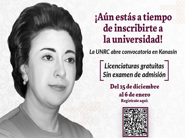 Mérida, Yucatán, a 30 de diciembre de 2025.-Con la finalidad de ampliar el acceso a la educación superior en 2026, el Gobierno del Estado informó que la Universidad Nacional Rosario Castellanos (UNRC), Unidad Kanasín, mantiene abierta su convocatoria de ingreso, con una oferta educativa gratuita, de calidad, con enfoque humanista y sin examen de admisión, dirigida a personas que concluyeron el bachillerato o se encuentran próximas a egresar. En cumplimiento del compromiso del Gobernador Joaquín Díaz Mena de acercar oportunidades de superación profesional a las y los yucatecos, el Gobierno del Estado, por conducto de la secretaría de Ciencia, Humanidades, Tecnología e Innovación (Secihti) convoca a las y los aspirantes a postularse a alguna de las siete carreras que se impartirán durante la segunda mitad del ciclo escolar, en modalidad híbrida, lo que permitirá combinar actividades presenciales y en línea. La oferta académica contempla la Ingeniería en Control y Automatización, así como las licenciaturas en Economía y Desarrollo Sostenible, Filosofía y Letras, Mercadotecnia y Ventas, Turismo, Desarrollo Comunitario para Zonas Metropolitanas, y Tecnologías de la Información y la Comunicación, con planes de estudio orientados a fortalecer la formación profesional y atender necesidades sociales, ambientales y económicas del estado. Si bien no se requiere aprobar un examen de admisión, la convocatoria establece la participación obligatoria en el curso propedéutico virtual del Programa para el Ingreso a la Universidad Rosario Castellanos (PIRC). El periodo de registro inició el pasado 15 de diciembre y concluirá el 6 de enero de 2026, mientras que el curso PIRC se impartirá del 15 de enero al 5 de febrero. La lista de personas que concluyan con éxito el proceso y resulten admitidas se dará a conocer el 12 de febrero. Posteriormente, las inscripciones con documentación completa se efectuarán del 16 al 18 de febrero, y el inicio de clases está programado para el 2 de marzo. Para conocer los requisitos, etapas y detalles de la convocatoria, se indicó que las y los interesados pueden ingresar al sitio rcastellanos.cdmx.gob.mx/licenciatura-yucatan, así como consultar las redes sociales de la Secihti, en @CienciaYuc, donde se difunde información y orientación para el proceso de registro. Navegación de entradasBloqueo en Los Héroes por presunta desaparición de una perrita Amplían seis meses el reemplacamiento en Yucatán