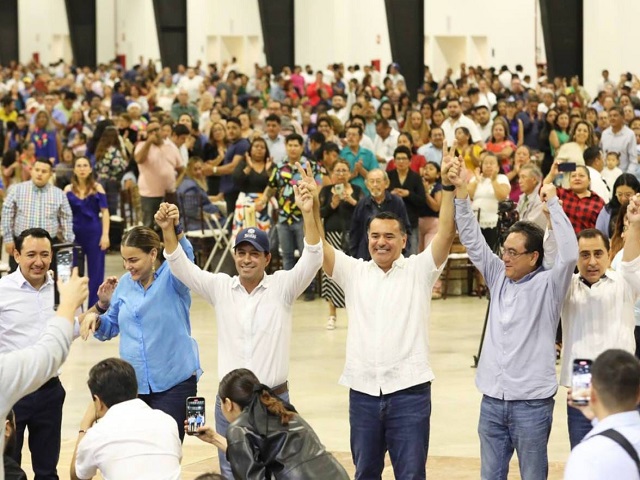 Mérida, Yucatán, 14 de diciembre de 2023.- Con un llamado de unidad y funcionar como un solo equipo, el Gobernador Mauricio Vila Dosal convocó a mantenerse unidos como uno solo para que la construcción del Yucatán del futuro continúe por buen rumbo con crecimiento económico, seguridad, tranquilidad y oportunidades para las familias de Yucat´n. Acompañado del precandidato del PAN a la gubernatura de Yucatán, Renán Barrera Concha y la precandidata del PAN a la alcaldía de Mérida, Cecilia Patrón Laviada, Vila Dosal señaló que, “estamos en pie de lucha para conservar todo lo que con tanto esfuerzo hemos logrado y no vamos a dar ni un paso atrás en la transformación de Yucatán”.“Tenemos el deseo y la convicción de servir a Mérida y a Yucatán para demostrar que el oasis que tenemos en el estado a diferencia del país, lo podemos seguir teniendo. Queremos seguir teniendo crecimiento económico, que las y los niños tengan salud garantizada, los altos niveles de seguridad y tranquilidad, por lo que refrendo todo mi apoyo para Renán Barrera y Cecilia Patrón para seguir transformando a Yucatán”, aseveró Vila Dosal ante más de 8 mil personas que conforman la estructura del PAN en Mérida.Junto con los Presidentes del PAN Yucatán, Asis Cano Cetina y en Mérida, Arturo León Itzá; Mauricio Vila Dosal señaló que, hoy Yucatán y Mérida se distinguen en todo México y a nivel mundial, gracias al trabajo en equipo que ha caracterizado a la entidad, transformación que, debe seguir adelante por el bien de las familias yucatecas por lo que, el 2024 es la elección que definirá el futuro del Yucatán de los próximos 30 años.“Si queremos garantizar el futuro de nuestras familias tenemos que lograrlo en cada paso que demos, juntos salgamos casa por casa, de calles en calles y demostrando que tenemos ganas de servir a Yucatán. Esta elección la vamos a ganar con buenos candidatos, con experiencia y con trabajo demostrado y así como ustedes, estoy decidido a que juntos hagamos historia”, concluyó Vila Dosal.Entre aplauso y porras, Vila Dosal les dijo a las y los precandidatos que, “tienen que estar agradecidos y sobretodo, que nunca se les olvide que, si llegan a un cargo público es por el esfuerzo y trabajo de los que hoy están aquí”.En su turno, el precandidato del PAN a la gubernatura de Yucatán, Renán Barrera Concha, resaltó que el trabajo en equipo de los yucatecos ha logrado resultados extraordinarios en todo el estado.“El llamado para todas y todos es a defender a Yucatán en el 2024, para ello todos somos necesarios y todos estamos convocados”, dijo.Defender a Yucatán significa tener la oportunidad de darle continuidad al trabajo realizado por el Gobierno del Estado en el rubro de seguridad, de movilidad urbana, competitividad y crecimiento económico, destacó Barrera Concha.Finalmente, Renán Barrera indicó que, “el trabajo en equipo nos permitirá sumar voluntades y entre todas y todos cuidar y defender a Mérida y Yucatán”.Por su parte, Cecilia Patrón Laviada, precandidata a la alcaldía de Mérida, invitó a continuar haciendo equipo para que Mérida siga siendo la mejor ciudad para vivir, por lo que señaló que, debemos trabajar muy fuerte para conservar lo logrado por los buenos gobiernos panistas.“Tenemos cientos de historias juntos, y seguiremos construyendo más, unidos buscando el bien común y la felicidad de todos. Es momento de que Mérida brille más que nunca. Que la chula Mérida siga siendo nuestro orgullo”, dijo a los integrantes de las estructuras panistas.En ese marco, el Presidente del PAN Mérida, Arturo León, recalcó que el 2023 fue un año de preparación, y a unos meses de iniciar las campañas ya se encuentran listos con su ejército electoral y territorial, que está conformado por más de 8,000 personas.“Estoy muy contento de cerrar este año con todas y todos ustedes, amigos y amigas, líderes que han hecho de Mérida la mejor ciudad de todo el país, para ustedes un fuerte aplauso. Hace año y medio ustedes me eligieron para llevar el rumbo del Partido en Mérida, y he puesto toda mi capacidad y corazón para hacer que nuestro partido sea más cercano a la gente, que trabaje en equipo e incluya a todas y a todos sin distinción alguna”, afirmó.Un PAN, agregó Arturo León, que se profesionalice y que tenga una estructura sólida en las colonias y comisarías, y déjenme decirles amigas y amigos que, con el apoyo de los subcomités, de la militancia, de los ciudadanos y de todos los aquí presentes el PAN Mérida está más fuerte que nunca y de manera histórica antes de comenzar las campañas hemos logrado tener listo nuestro ejército electoral y nuestra estructura territorial al 100, expresó el Presidente del PAN Mérida.En ese sentido, dijo que, la seguridad será de los temas centrales en las próximas campañas, ya que, “Cuando me preguntan que tiene para ofrecer Acción Nacional, yo les respondo con una palabra seguridad. Seguridad en forma de certidumbre en sus decisiones de gobierno, seguridad en forma de tranquilidad que se respira en las calles, seguridad en forma de que llegan más inversiones que se reflejan en más empleos y mejor pagados, seguridad que se traduce en precandidatos que dan resultados. Eso es lo que distingue a nuestro equipo de los demás improvisados y que tienen al país en un colapso total. El objetivo es claro, que Mérida siga siendo de las familias, de gente trabajadora que ha construido la mejor ciudad para vivir” externó Arturo León.Ante mujeres y hombres militantes, el Presidente del PAN Mérida aseguró que, se ha privilegiado el diálogo y la suma de talentos para fortalecer a sus estructuras y, “Hoy vamos unidos como un gran equipo, teniendo representación ciudadana en cada colonia y comisaría de Mérida, y juntos vamos a defender la tranquilidad que goza nuestra ciudad, y continuaremos con los cambios y transformación que nuestro Gobern