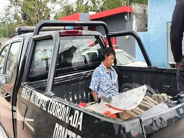 Un hombre conocido como “El Solín” fue detenido por elementos de la Policía Municipal de Tizimín, luego de que vecinos de la colonia San José Nabalam reportaran que se encontraba arrojando piedras desde el techo de un predio, poniendo en riesgo a peatones y automovilistas.Los hechos se registraron en la calle 28 con 49D y 49C, donde, según los reportes ciudadanos, el individuo presuntamente estaba bajo los efectos del alcohol o alguna sustancia tóxica, lo que provocó su comportamiento agresivo y la movilización policial.Al arribar al lugar, los uniformados localizaron al sujeto en la azotea del inmueble y, tras varios minutos de diálogo, lograron que descendiera de manera voluntaria. Posteriormente fue asegurado y trasladado al cuartel Morelos.El detenido permanecerá al menos 24 horas en las celdas de la cárcel pública, mientras las autoridades determinan su situación jurídica conforme a la ley.ACOM Navegación de entradasPolicías de Dzidzantún niegan atención a mujer lesionada Joven motociclista resulta gravemente herido tras choque en Ciudad Caucel
