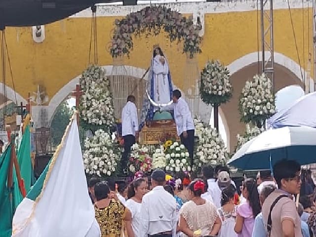 Izamal, Yucatán, 8 de diciembre de 2025.– Como cada año, el convento de San Antonio de Padua fue abarrotado por miles de peregrinos que acudieron para demostrar su amor y devoción a la Santísima Virgen de la Inmaculada Concepción, así como para cumplir mandas y agradecer los favores recibidos. Desde tiempos ancestrales, la sagrada imagen es considerada un referente de milagros y esperanza para los fieles.A las 11:00 de la mañana, los custodios de la imagen iniciaron los preparativos para colocarla en el atrio del convento, donde se celebró la Santa Misa. La ceremonia fue presidida por la imagen de la Virgen de la Inmaculada Concepción y oficiada por el Arzobispo Gustavo, con la presencia del párroco Fray Israel Bernal.Durante la celebración se contó con la asistencia de las embajadoras de las festividades: Lía Gabriela Canul, embajadora parroquial; Nayency Maricruz Euan Polanco, embajadora de la fiesta taurina; y Jaidy Aneliz Chale Uitz, embajadora de la Feria Izamal 2025, quienes realizaron una emotiva entrega de ofrendas en agradecimiento por el honor recibido, postrándose ante los pies de la Virgen, conocida cariñosamente como “Mamá Linda”.La ceremonia estuvo marcada por escenas de profunda fe, con numerosos asistentes visiblemente conmovidos, algunos de ellos con lágrimas en los ojos al recordar favores recibidos, especialmente relacionados con la salud.Al finalizar la misa, se llevó a cabo la tradicional procesión en el atrio del convento, bajo los arcos que delimitan el recinto, para posteriormente regresar la sagrada imagen al interior de la iglesia y colocarla en el altar, permitiendo que los devotos pasaran a venerarla.Al término del evento, la embajadora de la feria, Jaidy Aneliz Chale Uitz, entregó de manera gratuita llaveros con la imagen de la Virgen a los asistentes. Durante una breve entrevista, expresó:“Estoy muy agradecida con Dios y con Mamá Linda por haberme dado la oportunidad de estar en estos días de su fiesta como embajadora… pido a nuestra virgencita paz, amor, salud y muchas bendiciones para todos…”Finalmente, se informó que los gremios continuarán en los próximos días y que la sagrada imagen será devuelta a su camarín en el Santuario, como parte de la continuidad de las actividades religiosas. Navegación de entradasLa magia de la Navidad llega al Parque La Plancha Amplían horario para venta de alcohol en domingos decembrinos