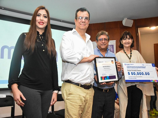 Mérida, Yucatán a 17 de enero de 2024.- Para Sergio González Galván, contador de profesión y escritor de vocación, ganar el Premio Nacional de Cuento “Beatriz Espejo” en su edición 2023 representa un aliciente para continuar en el camino literario.Desde Mexicali, Baja California, el recipiendario llegó a Mérida para compartir detalles de su obra “La casa más allá de la niebla”, la cual compitió con 271 obras de escritoras y escritores del país cuyas historias buscan visibilizar el género del cuento.La entrega del premio se realizó como parte de las actividades del Mérida Fest 2024 para celebrar el 482 aniversario de fundación de la Ciudad.Sergio González se considera un escritor que, en este momento, antes de buscar un estilo está aprendiendo a escribir bien.Su gusto por la literatura inició durante su infancia cuando su padre le regaló su primer libro de lectura “El Flautista de Hamelin”, pero fue en la adolescencia cuando descubrió a autores como Julio Cortázar, Juan José Arreola, Carlos Fuentes y Franz Kafka, quienes marcaron su andar literario.El ahora escritor dedicó varios años a su profesión como contador público, dejando de golpear las teclas de una máquina y cambiarlas por una computadora; sin embargo, un suceso fue suficiente para despertar y retomar el gusto literario por el cuento.Agradeció el apoyo de su esposa María Trinidad García por la motivación a retomar las letras y compartió que este año planea publicar su primera antología de cuentos.“Recibir este premio me inspira a continuar en el camino literario”, agregó.El Director de Cultura Irving Berlín Villafaña destacó que el talento y la creatividad se encuentran en cualquier profesión, como lo demuestra el ganador del premio.Expuso también que cada edición del certamen literario, la creatividad nacional en materia de narrativa de cuento corto tiene en el Premio uno de sus grandes alicientes.Loreto Villanueva Trujillo, titular de la Secretaría de la Cultura y las Artes (Sedeculta) Yucatán, expuso que gracias al Premio y a la gran participación de escritores y cuentistas del país, se posiciona a Mérida y Yucatán, como una ciudad y estado con gran cultura y amor a la literatura.En el acto, la Dra. Beatriz Espejo Díaz recordó que el premio que lleva su hombre, nació hace 23 años, ha ganado respeto, reputación y ha motivado a escritores del país a promover un género literario tan difícil como es el cuento.La destacada escritora, ganadora del Premio Nacional de Artes y Literatura 2023, en el rubro de Lingüística y Literatura, recordó que los nuevos cuentistas están buscando nuevas formas de afrontar el texto y al final del mismo, causar sorpresa.A los escritores los Invitó a leer mucho a otros cuentistas, afrontar el género con humildad y ver que hay grandes autores que siempre enseñan algo en el camino literario.La entrega del premio se realizó en la Videosala del Centro Cultural Olimpo y asistió también Liliana Bolio Pinelo, Subdirectora de Fomento a la Cultura, quien dio lectura al laudo y a las menciones honoríficas designadas por el jurado del concurso para los trabajos “Velamen”, “Los ojos del murciélago” y “Milagros está enferma”.El jurado del concurso literario estuvo integrado por Beatriz Espejo, Lauro Zavala y Javier España. Navegación de entradasNíger Desiderio Pool Cab, nuevo Consejero de la Judicatura Pide la agencia de transporte denunciar actos vandálicos