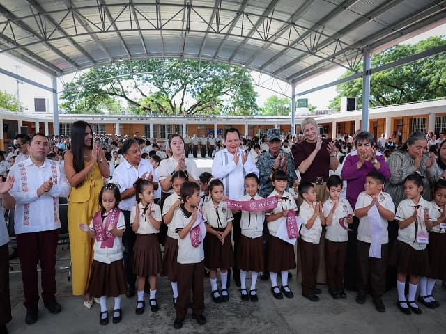 Mérida, Yucatán, a 6 de noviembre de 2025.-El Gobernador Joaquín Díaz Mena entregó un domo multiusos en la escuela primaria Juan Crisóstomo Cano y Cano, cumpliendo una promesa de campaña y dando respuesta a una solicitud de muchos años por parte de la comunidad escolar. Durante el evento, el mandatario estatal destacó que esta obra refleja el compromiso de su administración con la educación, el bienestar y el desarrollo integral de las y los estudiantes de Yucatán. “Este domo que inauguramos hoy, con una inversión de tres millones de pesos, representa más que una obra física: es un compromiso con la educación y con la niñez de Mérida, a quienes todos queremos ver crecer con orgullo y esperanza. Este espacio protege los sueños de 320 alumnos que ahora podrán realizar sus actividades de manera segura y cómoda. Cada peso invertido aquí se traduce en bienestar, pero sobre todo en confianza; la confianza que tienen en el Gobierno del Renacimiento Maya, un gobierno que escucha y cumple”, señaló el Gobernador. En presencia del titular de la Secretaría de Educación (Segey), Juan Enrique Balam Várguez, Díaz Mena explicó que la participación de elementos de la Guardia Nacional en este evento cívico contribuye a fortalecer la disciplina, el respeto a los símbolos patrios y la colaboración entre las instituciones y la comunidad educativa. “Hoy la Guardia Nacional llega con el programa La Guardia Nacional Contigo y permanecerá los próximos días realizando trabajos para mejorar y embellecer su escuela. Por parte del Gobierno del Estado, proporcionamos los materiales necesarios para que puedan llevar a cabo labores de pintura y mantenimiento general”, expuso. El Gobernador resaltó que la educación y la seguridad son pilares inseparables del bienestar social, pues cuando un niño aprende a respetar las normas, a cuidar a los demás y a confiar en las autoridades, se sientan las bases de una convivencia sana y armónica. “Sabemos que el bienestar no depende únicamente de la infraestructura, sino de todo lo que ocurre alrededor: la alimentación, la salud y la seguridad. Por ello trabajamos con una visión integral, en la que cada acción se acompaña de políticas públicas que protegen el entorno familiar y social. Nuestro compromiso es que ningún niño deje de aprender por falta de apoyo o por miedo a salir de casa”, afirmó. A solicitud de la directora del plantel, Yazmín Simón Patrón, el Gobernador giró instrucciones para que, antes de que concluya el año, se realice un levantamiento que permita programar el mantenimiento general y la rehabilitación de la escuela durante el próximo ejercicio. En este sentido, Díaz Mena agradeció el respaldo de la Presidenta de México, Claudia Sheinbaum Pardo, hacia Yucatán, y reconoció a las madres y padres de familia por el esfuerzo diario que realizan para acompañar a sus hijas e hijos en su formación educativa. Por su parte, el titular de la Segey detalló que esta obra representa un avance importante en la mejora de la infraestructura educativa, con el propósito de impulsar las actividades cívicas, culturales y deportivas de las y los alumnos de este plantel. En su intervención, Simón Patrón agradeció al Gobernador por hacer realidad este proyecto y afirmó que este día quedará grabado en la memoria de la comunidad escolar como un momento de profunda alegría y agradecimiento, al ver materializado un sueño largamente anhelado. Participaron en este evento cívico el coronel de la Guardia Nacional Estado Mayor, Isidoro Cázares Cruz, coordinador estatal de la Guardia Nacional en Yucatán; la senadora y vicepresidenta de la Mesa Directiva del Senado de la República, Verónica Camino Farjat; la diputada presidenta de la Comisión de Ciencia y Tecnología del Congreso del Estado, Maribel Chuc Ayala; el diputado local Julián Bustillos Medina; la titular de la Oficina de Enlace Educativo de la Segey, Eunice Miss Jiménez; la secretaria de Infraestructura para el Bienestar, Alaine López Briceño; así como Gisel Rosado Manzanilla y Humberto Poot Salazar, alumnos del plantel. Navegación de entradasRefuerzan vacunación contra influenza, Covid-19 y neumococo en Yucatán Ayuntamiento de Mérida mantiene el orden y recupera espacios que ponían en riesgo a la ciudadanía