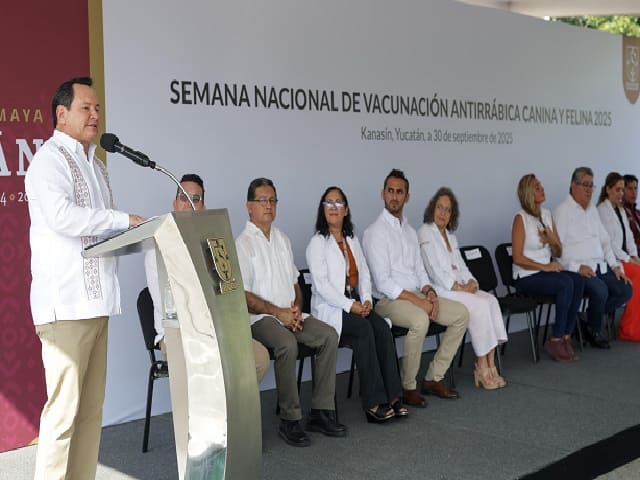 Kanasín, Yucatán, a 30 de septiembre de 2025.-El Gobernador Joaquín Díaz Mena encabezó el inicio de la Semana Nacional de Vacunación Antirrábica Canina y Felina 2025, programa que contempla la aplicación gratuita de más de 414 mil dosis en todo Yucatán, con el propósito de promover el bienestar de los animales de compañía y, al mismo tiempo, proteger a las familias y comunidades. En Kanasín, el mandatario supervisó el arranque de esta jornada, para la cual se habilitaron 274 puestos de vacunación en todo el estado, con el fin de garantizar la cobertura en cada municipio y salvaguardar la salud de más de dos millones de habitantes. Cuidar a las mascotas, señaló Díaz Mena, no es solo un acto de responsabilidad, sino también de amor, pues dependen de las personas para vivir con dignidad, contar con alimento, refugio, salud y, sobre todo, cariño. Subrayó que el bienestar animal no debe ser un lujo, sino un derecho que debe garantizarse con respeto. Desde el Centro de Salud Urbano de Kanasín, el Gobernador destacó que Yucatán acumula 27 años sin registrar casos de rabia humana transmitida por perros, logro alcanzado gracias a la concientización promovida de manera continua, así como al trabajo de brigadistas, veterinarios, personal de salud y voluntarios que suman esfuerzos para que la comunidad participe en estas campañas. Añadió que las mascotas no son simples acompañantes, sino parte de la familia, y que con su alegría recuerdan a diario lo que significa la lealtad y la entrega incondicional. Por ello —dijo— su administración seguirá apostando por la prevención, porque prevenir es más humano, justo y responsable que esperar a curar una enfermedad. Díaz Mena agradeció a la presidenta Claudia Sheinbaum Pardo por respaldar estas campañas de prevención con recursos y coordinación, lo que permite que Yucatán se mantenga como referente nacional en el cuidado de la salud pública y el bienestar animal. Por su parte, la titular de la Secretaría de Salud de Yucatán (SSY), Judith Elena Ortega Canto, llamó a no bajar la guardia, subrayando que la vacunación anual es indispensable, incluso para las mascotas que permanecen dentro del hogar. Invitamos a todas las personas que tengan perros y gatos a acudir al puesto más cercano y vacunarlos. No hay excusas: es rápido, gratuito y puede salvar vidas, enfatizó la funcionaria. En el evento participaron la diputada federal Jessica Saidén Quiroz; el legislador local Samuel Lizama Gasca; el director de Prevención y Protección de Riesgos para la Salud, Javier Balam López; la subdirectora de Salud Pública de la SSY, Marbella Perera Rivero; y el representante del Ayuntamiento de Kanasín, Jorge Iván May Collí. También estuvieron presentes el jefe de la Jurisdicción Sanitaria No. 1, Miguel Ángel Moreno Camelo; el responsable del Programa Estatal de Zoonosis, Daly Gabino Martínez Ortiz; la directora del Centro de Salud Urbano de Kanasín, Claudia Ramos Farjat; y el director de Planeación y Desarrollo de la SSY, Alberto Alcocer Gamboa. Navegación de entradas“Tócate y actúa”: Fundación Tócate impulsa detección temprana del cáncer de mama Ramírez Marín propone reconocer la podología como profesión sanitaria en México