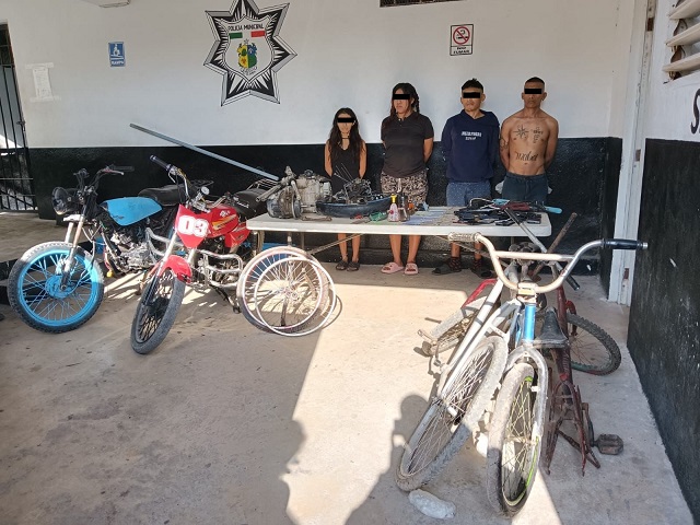 La Policía Municipal de Tizimín desmanteló una presunta banda de ladrones y estafadores durante un operativo realizado en la colonia Adolfo López Mateos. La intervención se llevó a cabo tras un reporte de riña en un predio de la calle 81, entre 52 y 50-B. Al llegar, los agentes descubrieron que la vivienda era utilizada como bodega para almacenar objetos robados.En el lugar, las autoridades aseguraron dos motocicletas, tres bicicletas y varias piezas de motor. Además, encontraron 30 teléfonos celulares en mal estado, 17 credenciales de elector y 16 chips de teléfono. También decomisaron herramientas y armas blancas, entre ellas un taladro, cinco cuchillos, dos machetes, un punzón, un bastón policial, una bomba de agua y dos lámparas LED. Durante la inspección, hallaron bolsas con material granulado, aparentemente cristal, y dos pipas de fabricación casera.Como resultado del operativo, fueron detenidas cinco personas identificadas como Jorge Luis R. S., de 22 años; Abel Luciano M., de 28; A.P., de 17; Ana Cristina T. C., de 22; y Getsemaní C. C., de 22. Todas y todos fueron puestos a disposición del departamento jurídico para las diligencias correspondientes.Las autoridades continúan con las investigaciones para determinar la procedencia de los objetos asegurados y la posible implicación de los detenidos en otros delitos. Navegación de entradasChoca y muere una mujer en periférico de Mérida Incautan droga en Mérida con valor estimado en 49 MDP presunto líder narcomenudista detenido