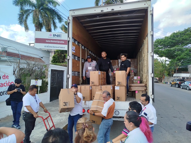 La Junta local del Instituto Nacional (INE) en Yucatán precisó que en total son 10 toneladas de material que llegó a la entidad, dentro del que se encuentra unas 10 mil mamparas especiales para este proceso, cuya jornada electoral se realizará el próximo 1 de junio.La papelería llegó de manera simultánea a los 6 distritos electorales del estado, en varios camiones, en los que se transportaba implementos como dados, etiquetas, forros para las urnas, debido a que se estará reciclando las que se emplearon en elecciones, mamparas especiales y las urnas genéricas que se emplearán en este proceso de manera exclusiva.El vocal ejecutivo de la junta distrital 03 de Mérida, Agustín Flores Barrera, precisó que esta documentación se mantendrá bajo custodia y posteriormente, entregará a los presidentes de mesas de casilla.Señaló, también, que en las próximas semanas estarán arribando las boletas electorales, actas y otros implementos bajo custodia.“El próximo 6 de mayo se van a recibir las que son custodiadas. Estamos hablando de boletas, actas sobres, tinta indeleble, listas nominales. En el periodo del 26 de mayo hasta un día antes. Son 5 días antes de la elección, se le entrega ese material a los presidentes de casilla en conjunto con el OPLE que es el Iepac”, dijo.ACOM Navegación de entradasAl menos 40 toneladas de basura fueron retiradas de 5 predios de la colonia Francisco I. Madero Ramírez Marín presenta en el Senado la iniciativa de Ley para regular contenidos que promuevan el crimen organizado