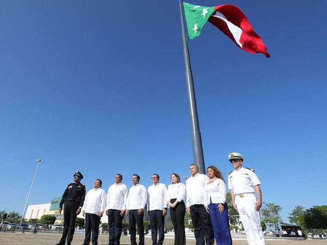 Mérida, Yucatán, 21 de agosto de 2023.- Por vez primera en los últimos 182 años, la bandera de Yucatán volvió a ondear, ahora a la par de la bandera de México, luego de que el Gobernador Mauricio Vila Dosal encabezó el izamiento del lábaro yucateco, símbolo distintivo de nuestra entidad que refrenda el compromiso del Estado con el Pacto Federal y fomenta el patrimonio cultural, historia e identidad de nuestro pueblo.Acompañado de los representantes de los Poderes Legislativo, Víctor Hugo Lozano Poveda, y Judicial, María Carolina Silvestre Canto Valdés, Vila Dosal presidió esta ceremonia cívica, con lo que se da cumplimiento a la reforma al Artículo 116 de la Constitución Política de los Estados Unidos Mexicanos relacionada al reconocimiento de los símbolos distintivos de las entidades federativas.De acuerdo con registros históricos, la bandera de Yucatán fue izada, de manera oficial y por única ocasión, el 16 de marzo de 1841 en el edificio del Ayuntamiento de Mérida. Después de esa fecha, no se volvió utilizar oficialmente hasta hoy cuando el Gobernador llevó a cabo de nuevo el izamiento y con lo que ya se le podrá ver en actos y edificios públicos.En la asta bandera monumental de la salida a Progreso y con el toque de diana antigua, ejecutado por la Banda de Guerra de la Secretaría de Seguridad Pública (SSP), Vila Dosal realizó el izamiento de la bandera yucateca, enseña que mide 24.5 metros de largo por 14.5 de ancho, que fue sostenida por alrededor de 20 elementos de las fuerzas estatales, en un hecho que atestiguaron el representante de la Secretaría de Gobernación en el estado, Andrés Peralta Rivera, el alcalde de Mérida, Renán Barrera Concha y el titular de la SSP, Luis Felipe Saidén Ojeda.Al acto también acudieron el fiscal General del Estado, Juan Manuel León; el Capitán de Fragata Servicio de Sanidad Naval Cirujano Dentista, José Alberto Rivero Gaxiola, en representación de la 13 Zona Naval; la representante de la delegación de la Fiscalía General de la República (FGR) en Yucatán, Arlet Aguiar Irigoyen, así como integrantes del gabinete legal y ampliado, diputados federales y estatales, magistrados, cónsules, dirigentes empresariales, rectores de Universidades y líderes sindicales. Navegación de entradasRealiza SSY acciones de prevención contra el dengue Edwin Bojórquez supervisa entrega de recursos del Programa de Asistencia Social
