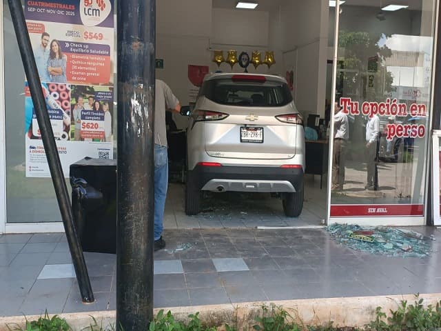 Un accidente inusual se registró este lunes en la colonia Miguel Hidalgo de Mérida, cuando una mujer terminó dentro de una financiera tras confundir el acelerador con el freno de su vehículo.Los hechos ocurrieron en la calle 50 con 21, cerca de Plaza Dorada, donde la señora conducía una camioneta Chevrolet. Según testigos, al intentar estacionarse frente a una plaza, la conductora cometió un error al presionar el pedal equivocado. En lugar de frenar, aceleró de golpe, lo que provocó que el vehículo se proyectara directamente contra la entrada principal del establecimiento financiero.El estruendo alarmó a empleados y transeúntes de la zona, quienes rápidamente se acercaron para verificar la situación. Afortunadamente, ningún trabajador ni cliente resultó lesionado, aunque la mujer quedó dentro del local hasta que pudo ser auxiliada.Elementos de la Secretaría de Seguridad Pública (SSP) acudieron al sitio para tomar conocimiento del accidente, realizar las diligencias correspondientes y coordinar el retiro de la camioneta.El incidente dejó daños materiales tanto en el vehículo como en la fachada del negocio.ACOM Navegación de entradasYucatán retrocede al tercer lugar en percepción de seguridad deja de ser el estado más seguro Retiran cinco toneladas de residuos tras limpieza simultánea de playas en Yucatán