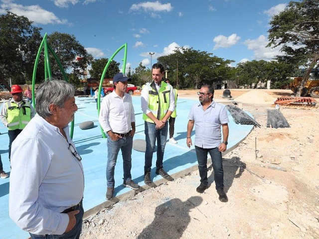 Mérida, Yucatán, 19 de diciembre de 2023.- Los trabajos de remodelación y modernización de la Unidad Deportiva del Sur “Henry Martín” avanzan a muy buen ritmo y estarán listas próximamente para convertirse en un espacio digno y de calidad para las familias de esta zona, la cual supervisó el Gobernador Mauricio Vila Dosal, y que contribuirá a la igualdad de todas las zonas de la ciudad, para que las familias del sur y sus alrededores tengan nuevos, mejores y más espacios para convivir sanamente.Acompañado del director general del Instituto para el Desarrollo y Certificación de la Infraestructura Física Educativa y Eléctrica de Yucatán (Idefeey), Luis Jorge Montalvo Duarte y del director general del Instituto del Deporte (IDEY), Jorge Antonio Esteban Abud; Vila Dosal recorrió el área de construcción en la colonia San José Tecoh, donde ya se encuentran instaladas grandes estructuras en las distintas áreas que conformarán este nuevo sitio recreativo.Se trata de una obra con una inversión histórica estatal de 146 millones de pesos para la construcción de una cancha de básquetbol, otra de fut 5, fut 7, fútbol de salón, tochito, así como jaulas de bateo, y un centro de usos múltiples con tableros, techo y gradas.Durante el recorrido en el lugar donde se encuentran cuadrillas de trabajadores laborando, se destacó que, la Unidad Deportiva del Sur contribuirá a la igualdad de todas las zonas de la ciudad para que las familias del sur y sus alrededores tengan nuevos, mejores y más espacios para convivir sanamente, con mayor iluminación led y más seguros.Cabe recordar que la rehabilitación de la Unidad Deportiva del Sur “Henry Martín” forma parte de un esfuerzo conjunto que anunció el Gobernador junto con el Ayuntamiento de Mérida para transformar al sur de la ciudad con la modernización de 23 parques del sur de la capital yucateca y la Unidad Deportiva del Sur “Henry Martín”, a través de una inversión sin precedentes de más de 180 millones de pesos.La obra contempla la modernización y ampliación del gimnasio, así como área de boxeo, y se están construyendo en esta área, baños, área médica, bodega y una nueva sala de ajedrez. Se rehabilitará el pasto de las canchas existentes, se implementará un sistema de riego y nueva iluminación led, se instalarán también nuevos espacios con pasto sintético, juegos, aparatos de ejercicio, y mobiliario como mesas, bancas, basureros entre otros.Contará con 6 locales comerciales, 117 nuevos cajones de estacionamiento, incluyendo espacios para personas con discapacidad, motos y bicicletas. Se modernizará todo el acceso principal incluyendo la explanada de entrada y el pórtico principal, además de que se construirá otro pórtico de acceso posterior con caseta de vigilancia y área de bicicletas.De manera histórica se van a construir dos nuevas grandes áreas de diversión para niñas y niños: un splash pad con área techada para generar sombra, con zonas acuáticas y juegos como lanzadores de agua, barco pirata y espacio con accesibilidad universal; así como una nueva área de diversiones extremas con tirolesa, caída libre, un brincolín para saltar sujetado, un laberinto, pared para escalar y una pista con carritos de pedales que harán un circuito.También, el área de oficinas estará recibiendo trabajos de mantenimiento y mejoras. Estos trabajos incluyen también el mejoramiento de los baños actuales, las instalaciones eléctricas, iluminación led en toda la unidad, la implementación de un nuevo sistema de riego, la construcción de barda perimetral, y la instalación de un moderno sistema de voz y datos en las oficinas del SITE, además de aire acondicionado y un sistema de videovigilancia.Todo esto, como parte del fuerte impulso del Gobernador Mauricio Vila Dosal para seguir transformando la vida de las familias yucatecas del sur de Mérida para que tengan la misma calidad de espacios para el deporte y la convivencia que cualquier otra zona de la ciudad. Navegación de entradasLas mujeres del interior del Estado se comprometen con Renán para hacerlo gobernador Renán Barrera estuvo en Tekit