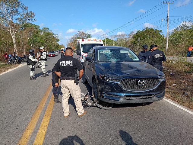 Un ciclista que resultó con graves lesiones tras ser atropellado por una camioneta en la carretera Valladolid-Tikuch, fue trasladado en helicóptero de la Secretaría de Seguridad Pública (SSP) a un hospital de Mérida para recibir atención médica especializada.El siniestro vial se registró esta mañana en el kilómetro 165 de la vía Mérida-Cancún, cuando el ciclista, identificado como un hombre de 43 años, se dirigía a su centro de trabajo y fue impactado por una camioneta Mazda.Tras el impacto, el ciclista sufrió un traumatismo craneoencefálico severo, fracturas en un brazo y una pierna, por lo que paramédicos de la SSP lo trasladaron al Hospital General de Valladolid.Debido a la gravedad de sus heridas, se solicitó el apoyo del helicóptero Bell 429 de la SSP, el cual despegó alrededor de las 2:30 de la tarde del Hospital General de Valladolid para trasladar al paciente al Hospital “Ignacio García Téllez” del IMSS (TI) en Mérida, donde recibirá atención médica especializada.Al aterrizar el helicóptero en el campo deportivo de la UADY, el ciclista fue abordado a una ambulancia de la SSP que lo llevó al nosocomio. Navegación de entradasSSP logra aseguramiento de 203 kilos de pepino de mar Un enfrentamiento en Samahil resultó en seis hombres heridos por disparos de escopeta