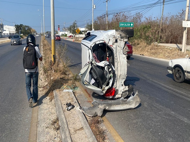 Una joven experimentó un verdadero milagro en la carretera Umán-Mérida, cuando su vehículo, un Suzuki Swift blanco, volcó después de ser impactado por un tráiler en el kilómetro 18 del tramo, cerca de Acim.El incidente ocurrió mientras la joven se dirigía hacia Umán y fue colisionada por el operador del tráiler, quien salía del estacionamiento de una gasolinera.El fuerte impacto hizo que la conductora perdiera el control de su vehículo, resultando en el vuelco del auto sobre su costado izquierdo.Personas que pasaban por el lugar se apresuraron a ayudar a la joven, mientras otros alertaban al número de emergencias 9-1-1.Los paramédicos de la SSP llegaron al lugar y atendieron a la conductora, quien sufrió algunos golpes. El conductor del tráiler fue detenido mientras se investigan las responsabilidades del accidente.ACOM Navegación de entradasIncendio de llantas y maleza en kanasín FGE y SSP detienen a dos individuos por tentativa de homicidio contra comediante