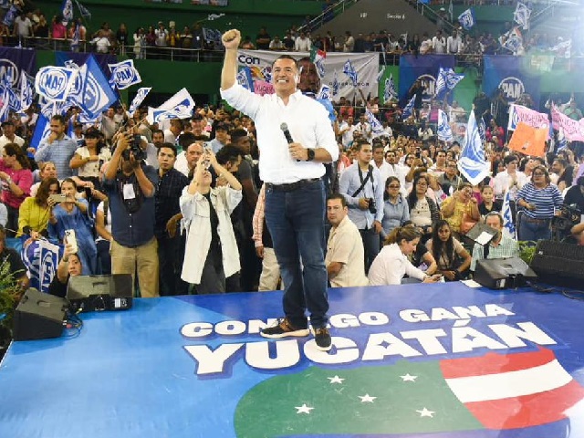 Mérida, Yuc, 2 de enero de 2022.- Ante el entusiasmo de más de cuatro mil militantes y simpatizantes que abarrotaron el Poliforum Zamná, los panistas Renán Barrera Concha, precandidato a la gubernatura de Yucatán y Cecilia Patrón Laviada, precandidata a la alcaldía de Mérida, cerraron su precampaña con una expresión de triunfo en este 2024 para mantener la seguridad, el desarrollo económico y las oportunidades para todos.“Empezamos el año con el pie derecho porque sabemos que los deseos del 31 de diciembre se van a concretar: ¡vamos a ganar la gubernatura de Yucatán, la Presidencia de la República con Xóchitl Gálvez y la alcaldía de Mérida con Cecilia Patrón!”, expresó Barrera Concha, ante los aplausos, porras y el ondear de banderolas del PAN. “Muchas gracias por este encuentro, sin duda, es un día de dar gracias porque en estos 60 días de recorrer municipios me tocó ver la grandeza, la nobleza y el compromiso de nuestra gente y de todos los sectores para defender juntos a Yucatán”, afirmó el precandidato a la gubernatura, quien estuvo acompañado de Xóchitl Gálvez Ruiz, Cecilia Patrón Laviada y Kathia Bolio Pinelo, precandidatas a la Presidencia, la alcaldía de Mérida y al senado por Yucatán, respectivamente, así como de Marko Cortés Mendoza y Asís Cano Cetina, presidentes nacional y estatal del PAN.“Estuve platicando con Xochitl que aquí va a haber un gobernador que sí va a tomar decisiones por Yucatán, comenzando con la seguridad, y no vamos a permitir que se imponga el centralismo. Vamos a trabajar de manera coordinada, eso sí, pero estamos en contra de la imposición y de la subordinación”, subrayó Barrera Concha, ante las muestras de aprobación de los asistentes.“Vamos a defender a Yucatán, vamos a hacer que siga siendo un estado del que todos estemos orgullosos, un estado donde cuidemos la seguridad, el desarrollo económico y las oportunidades para crecer parejo, donde las mujeres y los jóvenes tengan asegurado el futuro”, apuntó Renán Barrera.El precandidato destacó la presencia y elogió a sus compañeras Xóchitl Gálvez, Cecilia Patrón y Kathia Bolio, por ser extraordinarias mujeres y afirmó sentirse orgulloso de hacer equipo con ellas para competir en el proceso electoral de este año.Asimismo, agradeció la presencia de Santiago Creel Miranda y de todos los senadores y diputados federales que asistieron a la reunión, así como a todos y todos los precandidatos del PAN a las alcaldías y diputaciones locales, a quienes les pidió oponerse de pie para recibir los aplausos de los asistentes.En otra intervención, Marko Cortés pidió, aunque no estaba presente, un aplauso para el gobernador Mauricio Vila Dosal por los avances logrados en Yucatán, que lo han colocado como uno de los mejores estados del país, y recalcó el llamado a defender a Yucatán para mantener la seguridad y el desarrollo económico.El líder nacional del PAN coincidió en que en este 2024, Renán Barrera y Cecilia Patrón ganarán las elecciones, porque los yucatecos no quieren un gobernador de cuarta y una alcaldesa de Mérida de cuarta, y afirmó también que Xóchitl Gálvez será la primera presidenta de México, arrancado aplausos y porras de la animada concurrencia del Poliforum Zamná. Navegación de entradasMeridanos responsables, pagan el predial poco más de 2 mil ciudadanos Reconoce el Presidente Andrés Manuel López Obrador el trabajo del Gobierno de Mauricio Vila Dosal en seguridad y combate a la pobreza